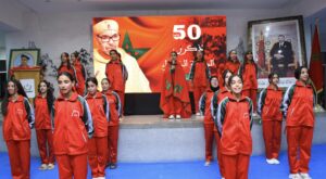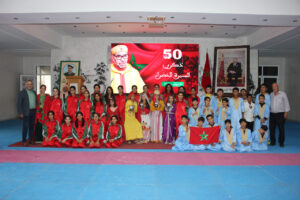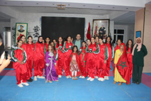 بدورها، عبّرت التلميذة يسرى السعيدي، نيابة عن باقي المستفيدات والمستفيدين من خدمات المؤسسة، عن فرحة جميع الأطر والتلاميذ بهذه المناسبة الوطنية الغالية، مؤكدة تشبثهم الدائم بثوابت الأمة المغربية واستعدادهم الدائم لخدمة الوطن والدفاع عن وحدته الترابية تحت القيادة الرشيدة لجلالة الملك محمد السادس نصره الله.
