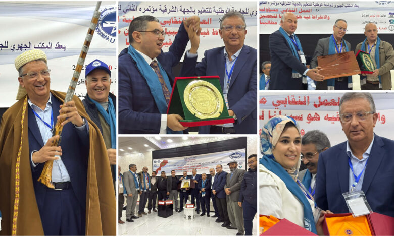 المؤتمر الجهوي الثاني للجامعة الوطنية للتعليم بجهة الشرق يتوج تكريمات مميزة ويجدد الثقة في قيادته الجهوية