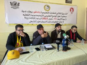 بعد ندوة صحفية بالناظور.. التنسيق النقابي الثلاثي للتعليم يقرر إضراباً إقليمياً ومسيرة ووقفة احتجاجية يوم الخميس المقبل