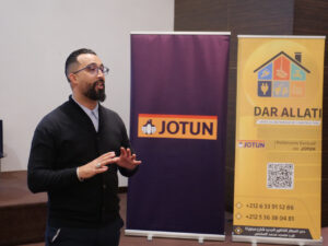 وشكل هذا التكوين مناسبة لتعزيزمعارف المشاركين التقنية والمهنية، حيث قدم مؤطر معتمد من شركة “جوتن” بالمغرب عرضاً مفصلاً حول تاريخ الشركة ومسارها العالمي، إلى جانب التعريف بمختلف منتجاتها، مع التركيز على خصائص الدهانات عالية الجودة، والمجموعات اللونية المبتكرة، والحلول الحديثة التي تعتمدها الشركة في مجال الصباغة والديكور.