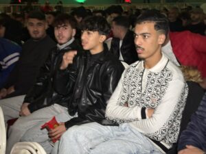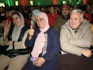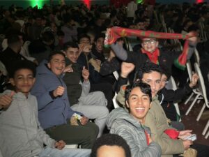 ولم تكن الأجواء داخل القاعة مجرد مشاهدة عادية، بل تحولت إلى “ملعب موازٍ” تعالت فيه الهتافات والتشجيعات مع كل هجمة مغربية، في استحضار لندية تاريخية تجمع بين منتخبين عملاقين في القارة السمراء. وزاد من حرارة التفاعل تنظيم فقرات تنشيطية وترفيهية موازية، أضفت طابعا احتفاليا متكاملا على الحدث، وجعلت من الفضاء مكاناً للتلاقي والفرح الجماعي بين أبناء المدينة.