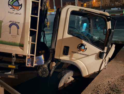 انعدام التشوير وسوء الإنارة يتسببان في سقوط شاحنة نفايات بساقية عند مدخل سلوان