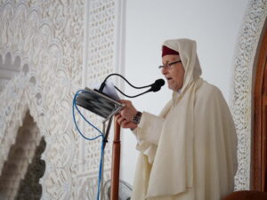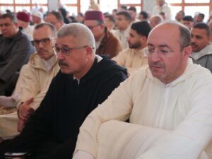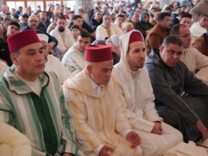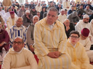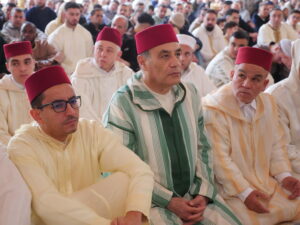 واستُهلت شعائر صلاة العيد بالتكبير الجماعي، قبل أداء الصلاة، لتتبعها خطبة العيد التي ألقاها الأستاذ العلامة ميمون بريسول، والتي تناول فيها القيم الدينية والروحية لعيد الفطر، مسلطًا الضوء على معاني التضامن والتآزر، وصلة الرحم، والتسامح بين أفراد المجتمع، داعيًا إلى ترسيخ هذه القيم في الحياة اليومية.