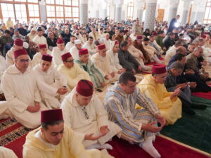 واختُتمت الأجواء برفع أكفّ الضراعة بالدعاء لأمير المؤمنين صاحب الجلالة الملك محمد السادس نصره الله، بأن يحفظه ويمتعه بموفور الصحة والعافية، قبل أن يتبادل المصلون التهاني والتبريكات في مشهد يعكس روح الأخوة والتلاحم، رغم التقلبات الجوية التي فرضت تغيير مكان إقامة هذه الشعيرة الدينية.